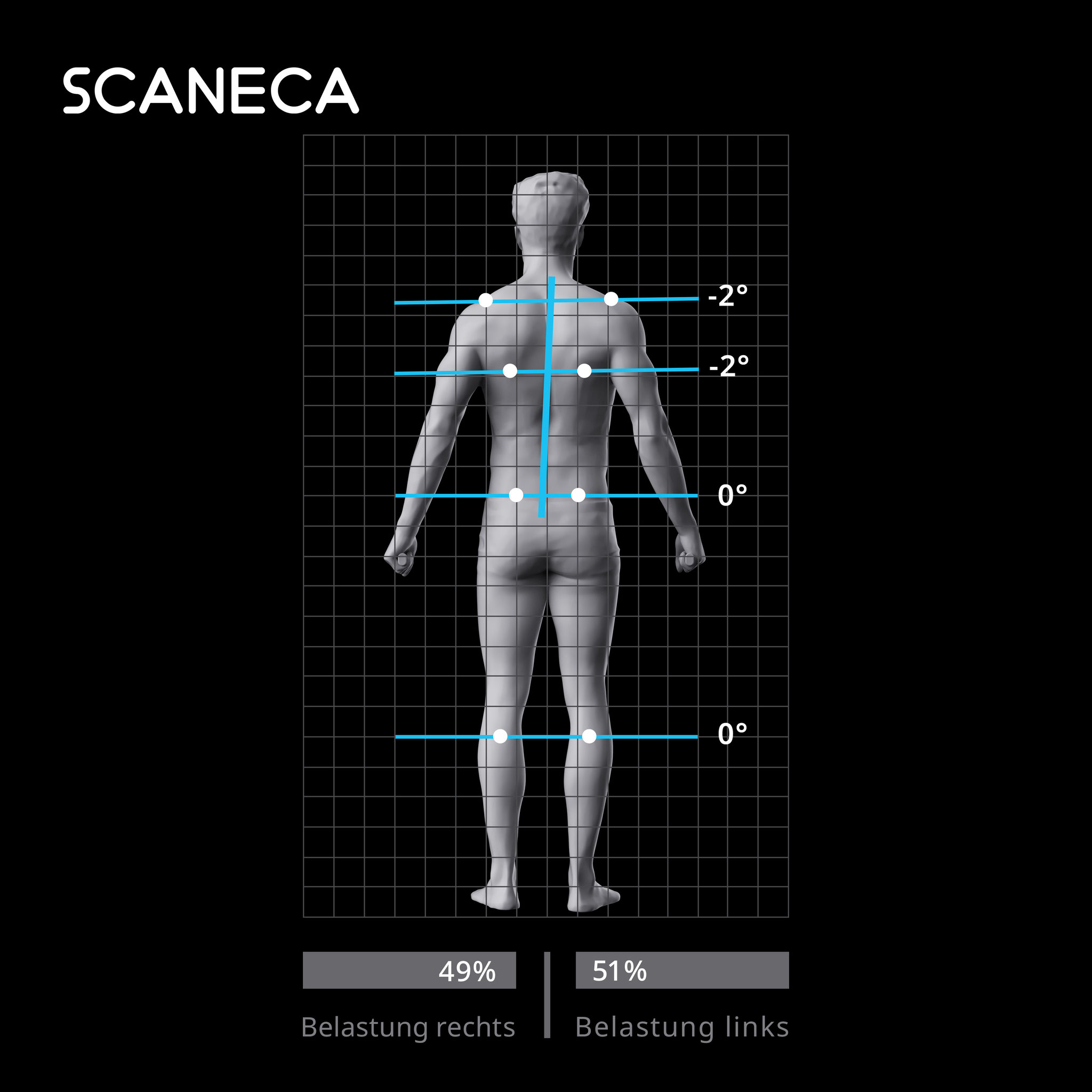 Zusätzlich liefert Scaneca eine umfassende Körperfettanalyse, die auf modernsten optischen Verfahren basiert. So lassen sich Körperfettanteil, Muskelverteilung und weitere wichtige Gesundheitsdaten präzise erfassen und dokumentieren.